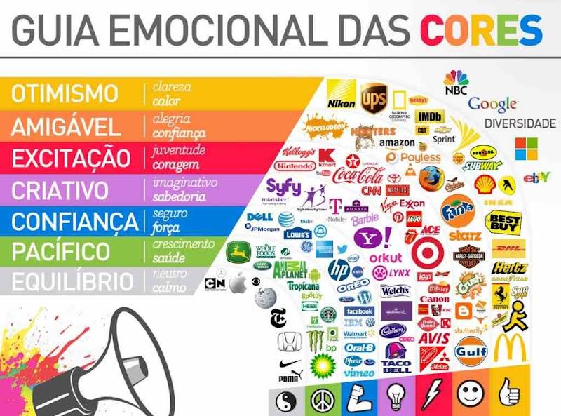 Um guia de cores de algumas marcas, disponível em https://thelogocompany.net/psychology-of-color-in-logo-design/, faz a conexão entre cores e sentimentos de algumas marcas.