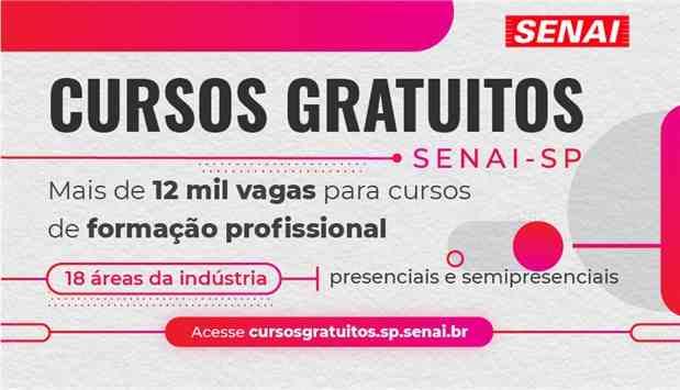 O novo site cursosgratuitos.sp.senai.br concentra em uma mesma plataforma as oportunidades abertas para os cursos livres, em 18 áreas da indústria. Serão atendidos os setores de Alimentos, Automação, Automotiva, Construção, Couro e Calçados, Educação, Eletroeletrônica, Energia, Gráfica e Editorial, Joalheria, Logística, Madeira e Mobiliário, Metalmecânica, Papel e Celulose, Plásticos, Refrigeração, Saúde e Segurança e Tecnologia da Informação. As ofertas de cursos podem ser atualizadas diariamente, por isso, vale acompanhar o site com frequência.