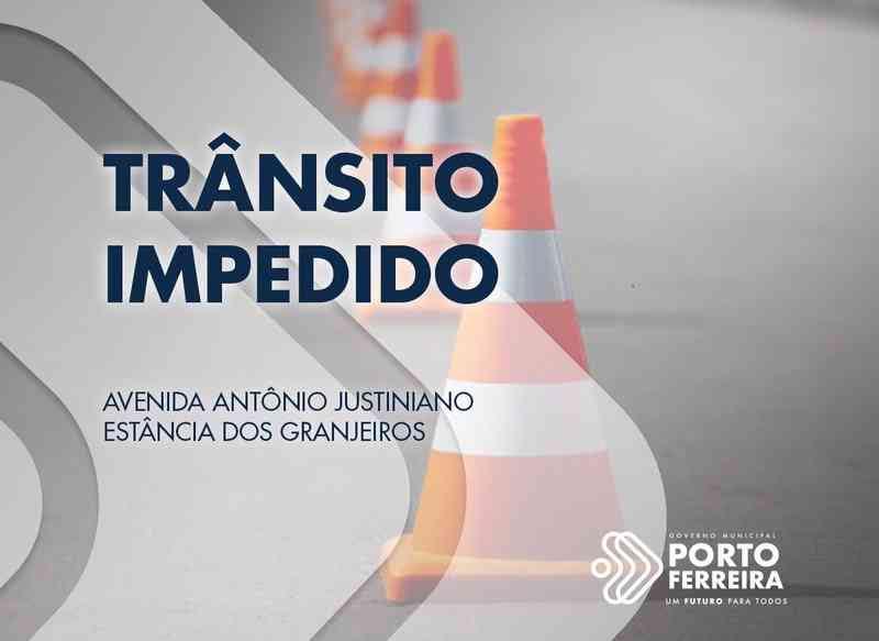 A Prefeitura de Porto Ferreira, por meio da Secretaria de Obras e Desenvolvimento Urbano, informa que nesta quinta-feira (23/09) a avenida Antônio Justiniano, no trecho compreendido no bairro Estância dos Granjeiros, ficará fechada para o trânsito.