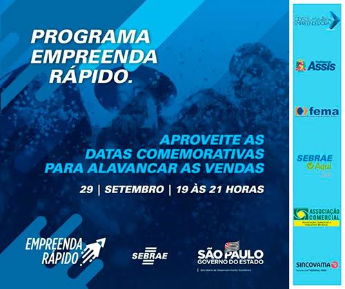 As datas comemorativas e temáticas são uma ótima oportunidade para empresários que desejam alavancar as vendas ou, até mesmo, conquistar novos clientes. E para ajudar quem quer saber mais sobre o assunto e acertar no planejamento, o Sebrae-SP está com inscrições abertas para o evento online Descomplique Vendas: datas comemorativas. As pessoas interessadas poderão se inscrever pelo link. Mais informações pelo telefone 0800 570 0800.