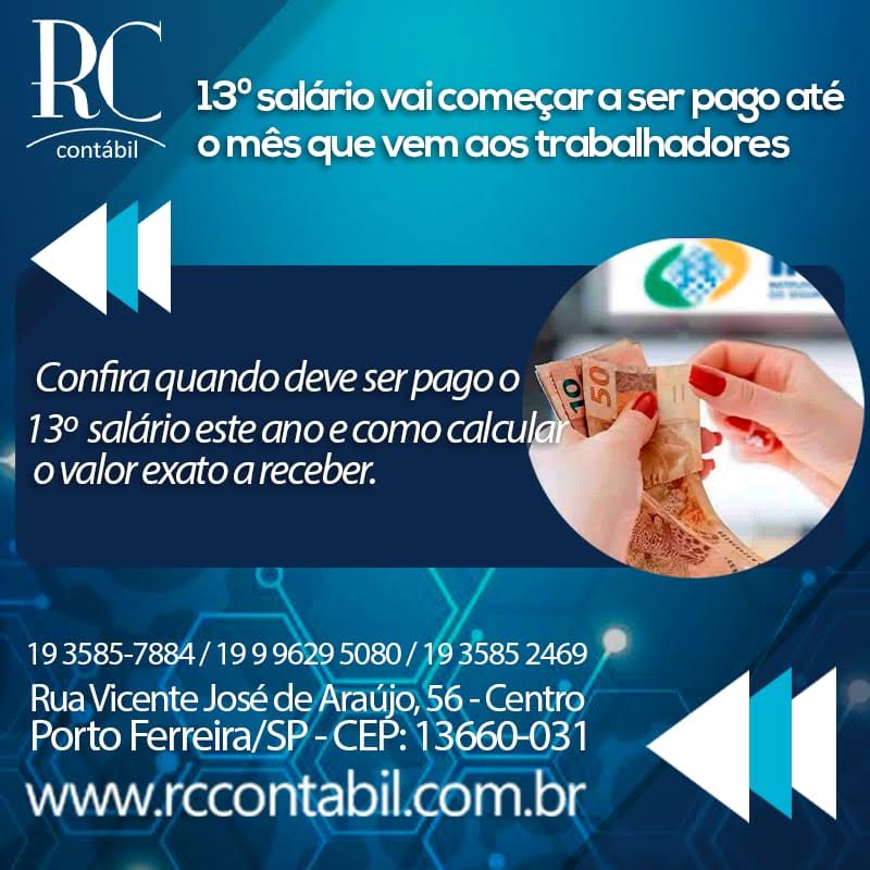 A primeira parcela corresponde a 50% do salário e deve ser paga até o dia 30 de novembro. Além disso, a primeira parcela é livre de descontos de encargos trabalhistas como INSS e IRRF.