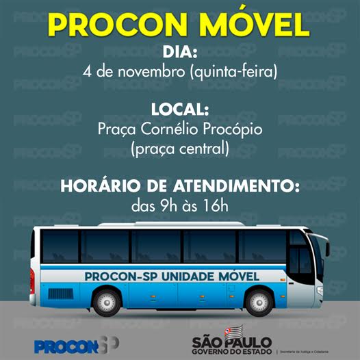 Em parceria com o Procon de Porto Ferreira, a Fundação Procon-SP, órgão vinculado à Secretaria da Justiça e Defesa da Cidadania, leva a sua unidade móvel para atendimento à população do município no próximo dia 4 de novembro (quinta-feira), das 9h às 16h. Os especialistas do Procon irão orientar consumidores sobre seus direitos e, também, pessoas superendividadas, que são as que comprometeram mais do que 30% dos seus rendimentos com dívidas de consumo.