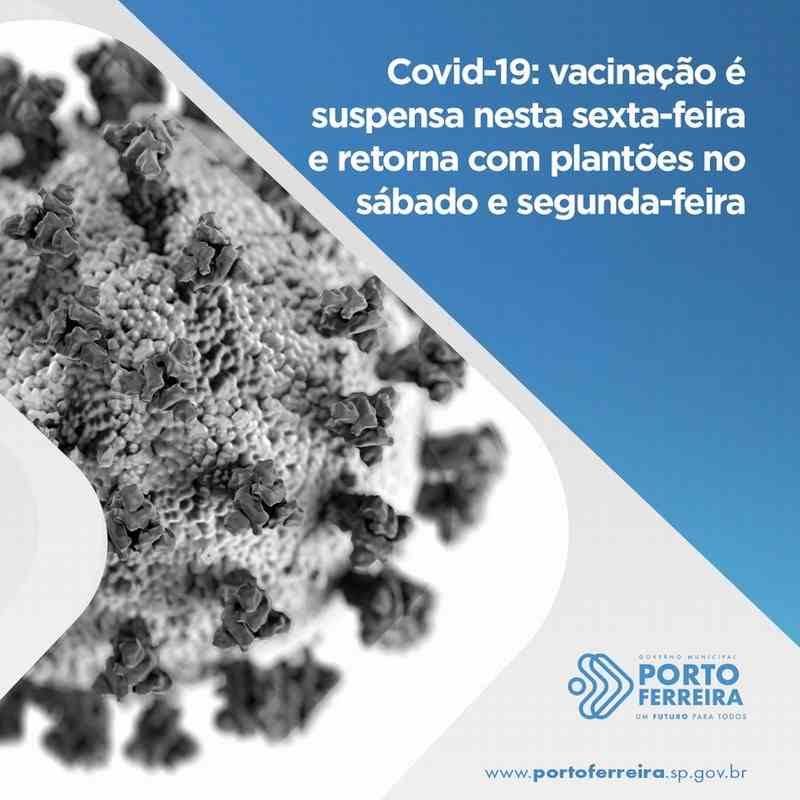 A Vigilância Epidemiológica de Porto Ferreira informa que nesta sexta-feira (29/10), não haverá aplicação de vacina contra a covid-19 no município, pois é ponto facultativo do Dia do Servidor Público.