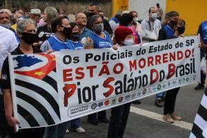 Profissionais da Segurança Pública do Estado de São Paulo realizaram a segunda manifestação para reivindicar reajuste salarial nesta quarta-feira (27/10). Representantes das polícias Técnico-Científica, Militar, Civil e Penal se reuniram na Praça Roberto Gomes Pedrosa, em frente ao estádio do Morumbi, e pretendiam seguir com o ato até o Palácio dos Bandeirantes, mas foram barrados por equipes da PM a pedido de João Doria.