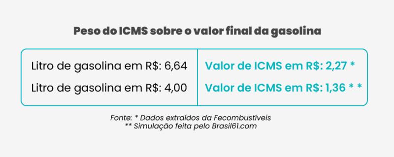 A alíquota do tributo se mantém a mesma, mas o que ocorre no modelo atual de cálculo do ICMS é que, quando o petróleo fica mais caro e o preço dos combustíveis nas refinarias sobe, as receitas dos estados com o imposto aumentam automaticamente. Assim, as unidades da federação recebem um montante maior na arrecadação total sobre os combustíveis. Segundo especialistas, uma solução seria diminuir essa alíquota, para reduzir o impacto de fatores externos no bolso do consumidor final.