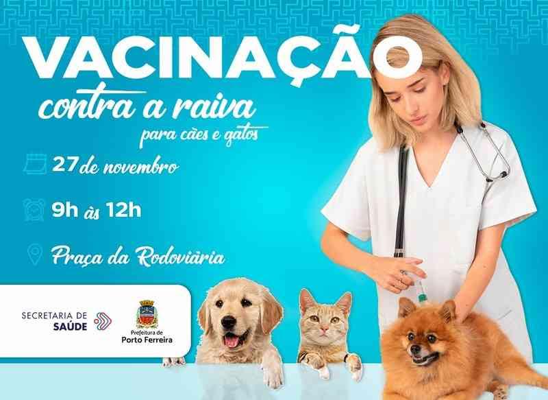 Neste sábado (27/11) a Secretaria de Saúde de Porto Ferreira realiza uma campanha de vacinação antirrábica para cães e gatos.