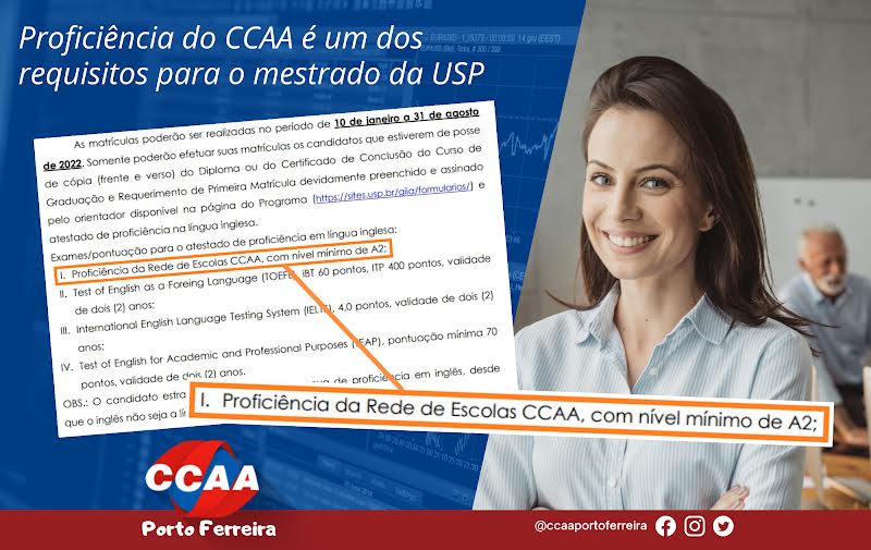 Os alunos do CCAA têm conquistado, há vários anos, a maior média Brasil no TOEFL® ITP, uma das principais certificações internacionais da língua inglesa. No CCAA, o exame é gratuito ao final do curso.