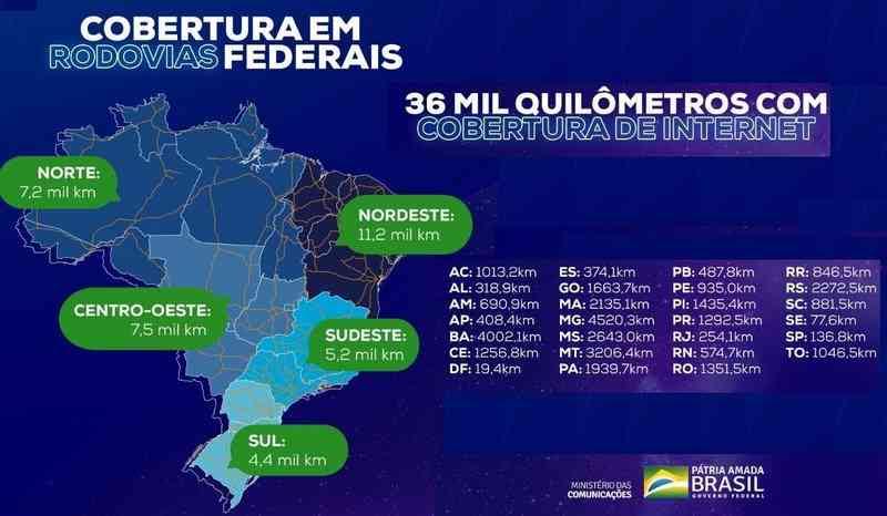 ESTRADAS CONECTADAS – Receberão cobertura de internet móvel as rodovias que ainda não contam com infraestrutura de conectividade. A região que mais terá malha rodoviária conectada será o Nordeste (11,2 mil km), seguida do Centro-Oeste (7,5 mil km), Norte (7,2 mil km), Sudeste (5,2 mil km) e Sul (4,4 mil km).