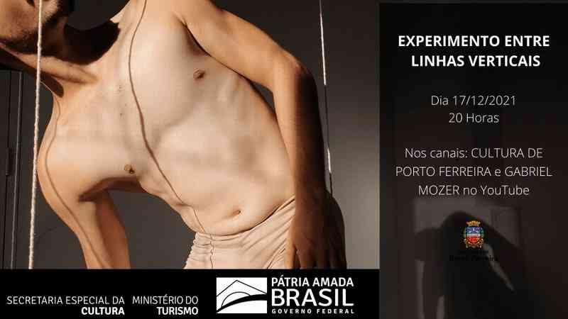 Com recursos da Lei Aldir Blanc a Secretaria de Cultura e Economia Criativa de Porto Ferreira faz o lançamento da obra de vídeo dança "Experimento entre linhas verticais" do intérprete-criador Gabriel Mozer, nesta sexta-feira, 17 de dezembro, a partir das 20 horas.