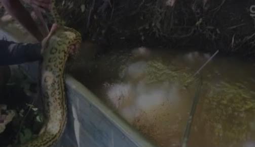 Uma sucuri foi resgatada no Rio Mogi Guaçu, em Pirassununga (SP), na manhã de ontem, sexta-feira (24). A cobra de aproximadamente três metros estava enroscada em uma rede de pesca, próxima a um barranco no distrito de Cachoeira de Emas.