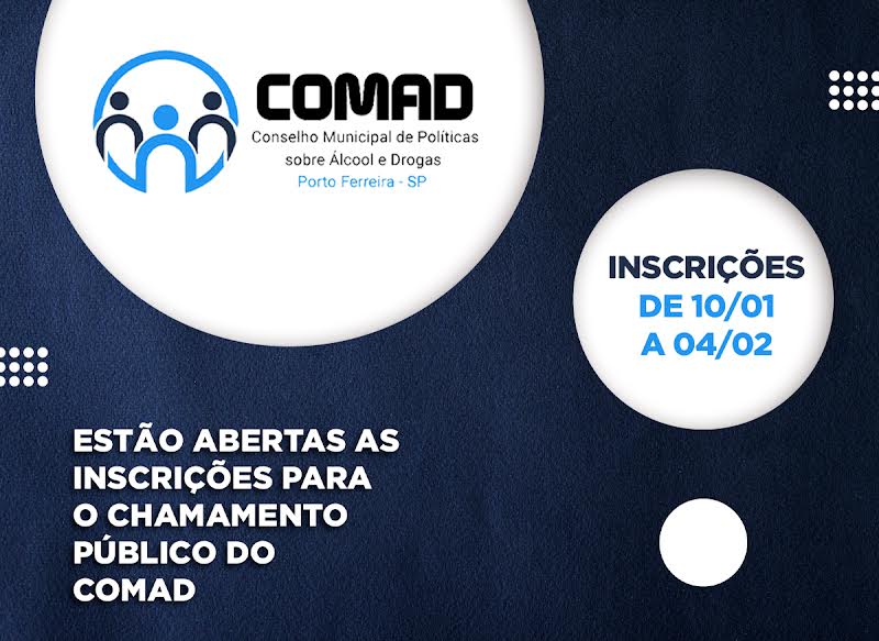 A Prefeitura de Porto Ferreira, através da Casa dos Conselhos Municipais divulga os critérios que regulamentarão o Processo Seletivo para composição das vagas dos representantes da Sociedade Civil, Titulares e Suplentes, no Conselho Municipal de Políticas Públicas Sobre Álcool e Drogas (COMAD), Gestão 2022/2024.