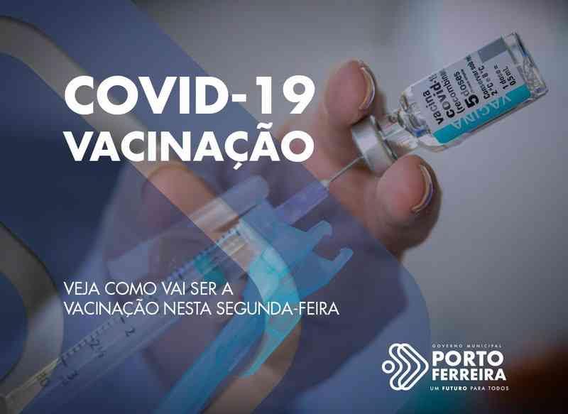 A Vigilância Epidemiológica de Porto Ferreira informa como será o esquema de vacinação contra a covid-19 nesta segunda-feira (17/01), das 8h às 16h, em três locais. Veja programação: