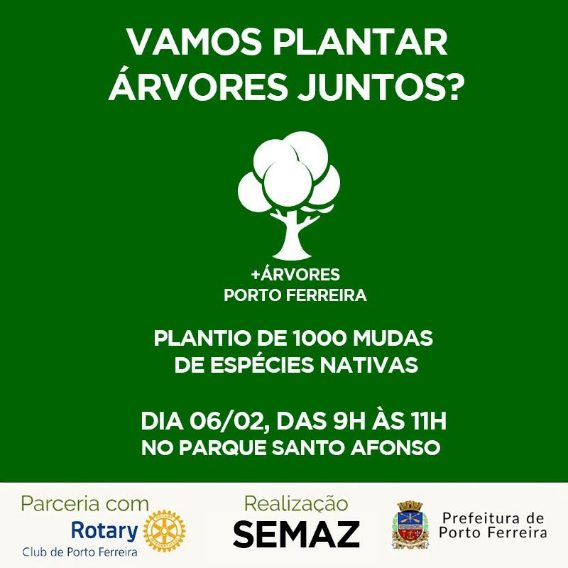 Aproveitando a época chuvosa e a necessidade de fazer a compensação ambiental adequada no município, a Secretaria de Meio Ambiente e Zeladoria (Semaz), em parceria com o Rotary Club de Porto Ferreira e apoio da Usina Ferrari. lança este novo projeto de plantio coletivo de mudas de árvores nativas.