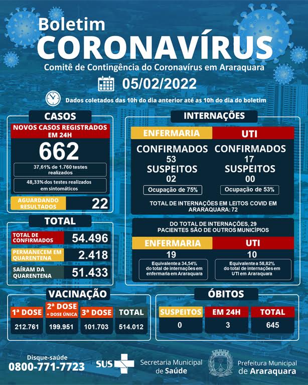 As informações oficiais sobre o enfrentamento do Coronavírus no município estão no site http://www.araraquara.sp.gov.br e nas redes sociais da Prefeitura.