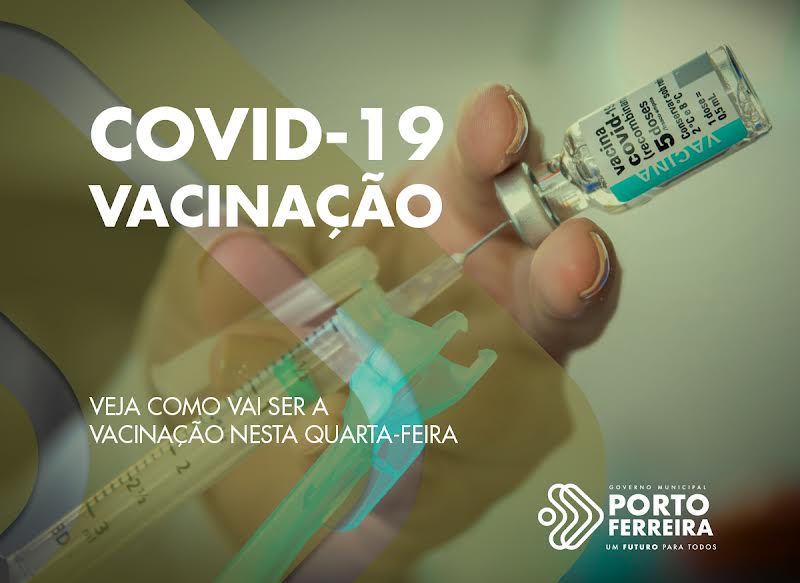 A Vigilância Epidemiológica de Porto Ferreira informa como vai ser o esquema de vacinação contra covid-19 nesta quarta-feira (09/02), em dois horários e três locais. Veja a programação: