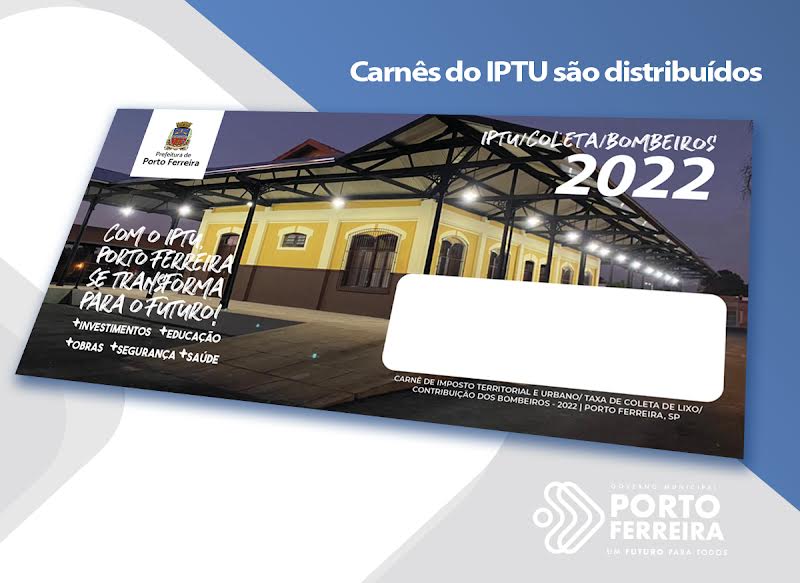 A Secretaria de Fazenda e Planejamento da Prefeitura de Porto Ferreira comunica que começaram a ser entregues os carnês do IPTU (Imposto Predial e Territorial Urbano) para o exercício de 2022.
