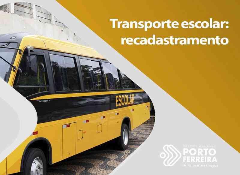 A Secretaria de Educação (Seduc) está promovendo um recadastrament o de todos os estudantes usuários do sistema de Transporte Escolar. O prazo se encerra nesta sexta-feira (18/02).Os pais devem procurar a Secretaria de Educação (rua Coronel Procópio de Carvalho, 352, Centro – Edifício Sud Mennucci), das 8h às 16h. Os documentos necessários são: comprovante de endereço original e certidão de nascimento do aluno. A partir do dia 8 de março não serão mais transportados alunos que não tiverem feito o recadastramento.