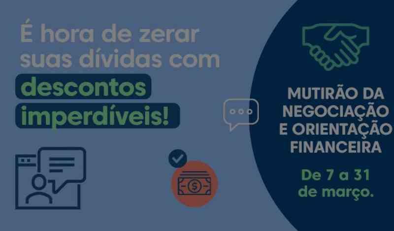A Federação Brasileira de Bancos (Febraban), em parceria com o Banco Central, a Secretaria Nacional do Consumidor (Senacon) e os Procons de todo o país, promove o Mutirão Nacional de Negociação de Dívidas e Orientação Financeira, a partir de segunda-feira (7) até 31 de março, em que consumidores poderão negociar suas dívidas com os bancos.