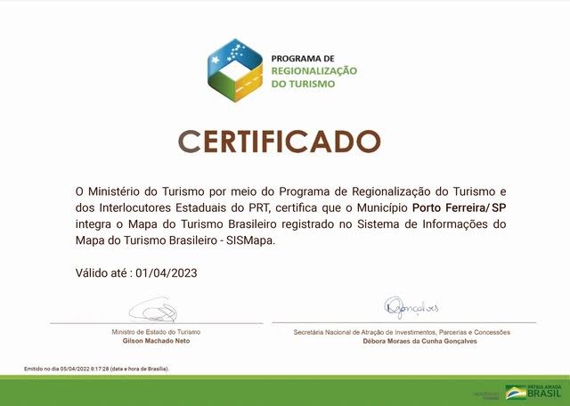 O chefe da Divisão de Turismo de Porto Ferreira, Alexandre Vasconi, destacou que a atual gestão municipal atua de forma a estruturar o turismo local e regional, atendendo a todos os requisitos do Mapa do Turismo Brasileiro 2022, realizando diversas ações voltadas para o desenvolvimento turístico do município, com ênfase na geração de emprego e renda.