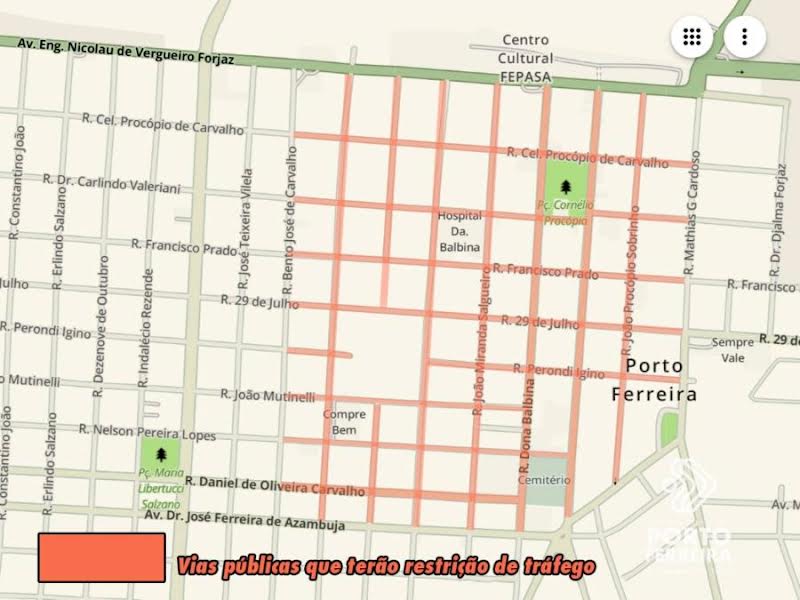 – Rua Comendador Agostinho Prada, no perímetro entre a avenida Engenheiro Nicolau de Vergueiro Forjaz até a avenida Dr. José Ferreira de Azambuja.