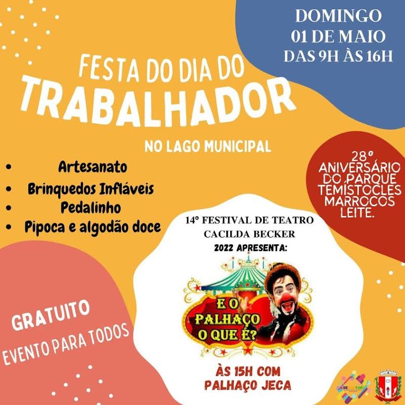 Para homenagear os trabalhadores, a Secretaria Municipal de Cultura e Turismo promoverá neste domingo, 1º de maio, as comemorações do Dia do Trabalhador e do 28º Aniversário do Parque Municipal Temístocles Marrocos Leite.