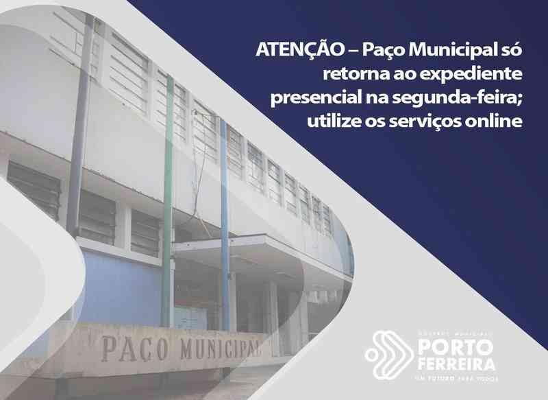 Atenção Porto Ferreira! O Paço Municipal só retorna ao expediente presencial na segunda-feira(09);