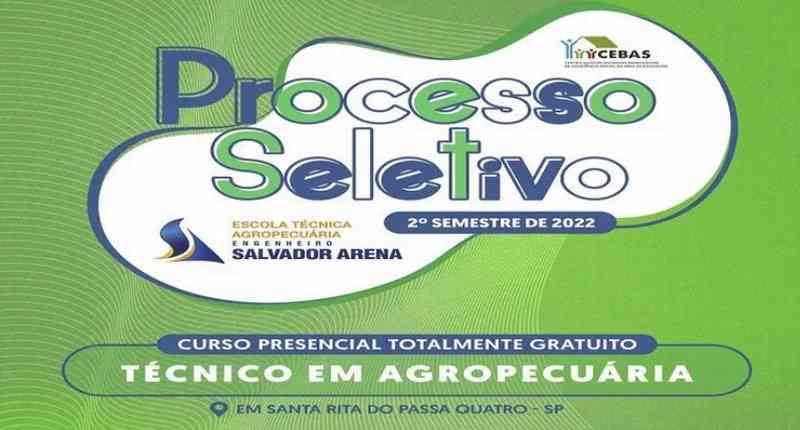 A Escola Técnica Agropecuária Engenheiro Salvador Arena, em Santa Rita do Passa Quatro (SP), abriu inscrições para a nova turma de seu curso Técnico em Agropecuária, que começa em agosto de 2022. Destinado a candidatos que concluíram o ensino médio e ainda não completaram a formação superior, o curso oferece uma capacitação intensiva, visando uma rápida colocação no mercado de trabalho em atividades de gestão, planejamento, projetos, produção animal, vegetal e agroindustrial. A inscrição e o curso são gratuitos.