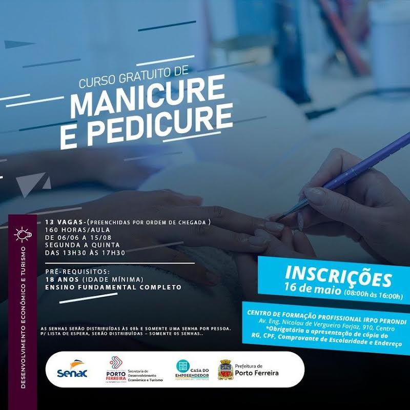 A Prefeitura Municipal de Porto Ferreira, em parceria com o SENAC, por intermédio da Secretaria de Desenvolvimento Econômico e Turismo, oferece vagas para o curso de: