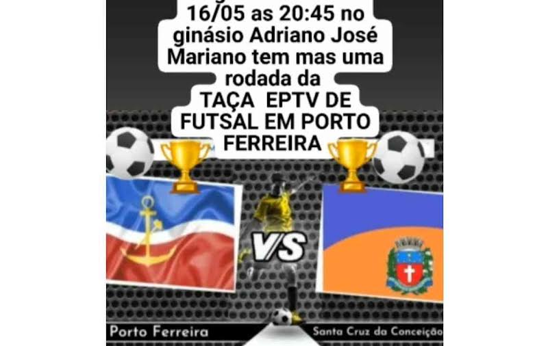 A equipe de futsal da Secretaria de Esportes e Lazer de Porto Ferreira joga na noite desta segunda-feira (16/05), às 20h45, no Ginásio de Esportes Adriano José Mariano, contra a equipe de Santa Cruz da Conceição, pela 3ª fase 24ª Taça EPTV Central – ano 2022.