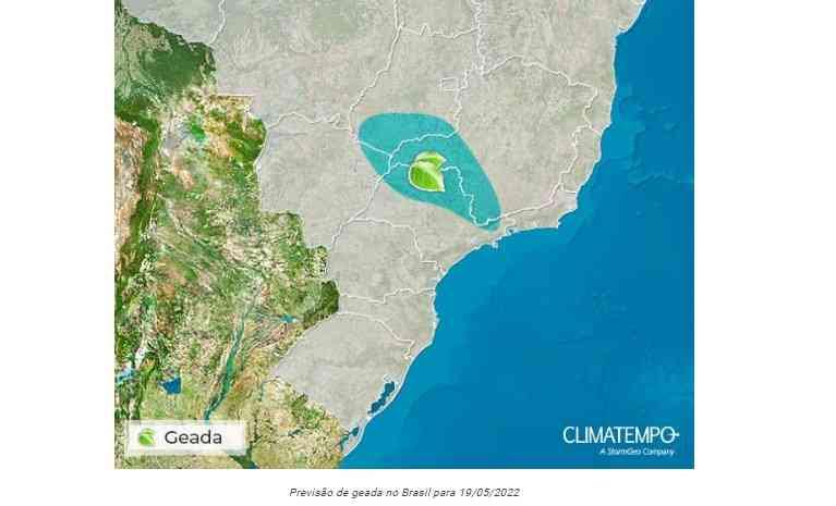 Temperaturas um pouco abaixo de 0°C são possíveis no Sul de Minas Gerais e entre 0°C e 5°C no interior paulista, no Triângulo/Alto Paranaíba, em Goiás, no Distrito Federal, em Mato Grosso do Sul, além dos estados da Região Sul