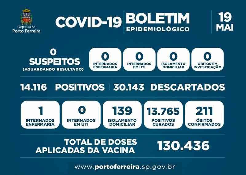 A Vigilância da Secretaria de Saúde de Porto Ferreira divulgou nesta quinta-feira (19/05) o Boletim Epidemiológico nº 764/2022, atendendo à determinação prevista no decreto municipal 1.281/2020. Foram confirmados mais 22 casos e o total de pacientes em isolamento é de 139.