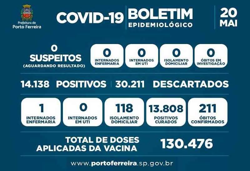 A Vigilância da Secretaria de Saúde de Porto Ferreira divulgou nesta sexta-feira (20/05) o Boletim Epidemiológico nº 765/2022, atendendo à determinação prevista no decreto municipal 1.281/2020. Foram confirmados mais 22 casos e 43 pacientes estão curados. Assim, a semana fecha com 193 positivos e 118 pacientes em isolamento.