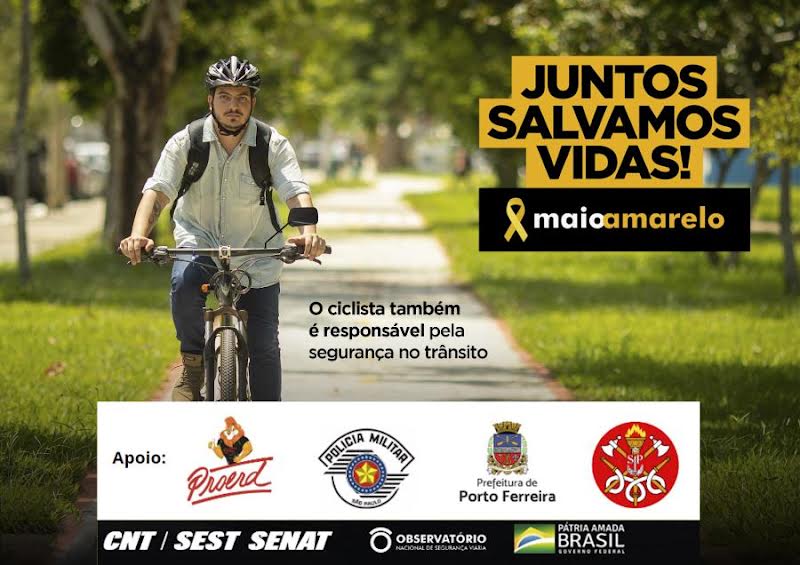 Uma iniciativa do Sest/Senat, com apoio da Prefeitura de Porto Ferreira, Polícia Militar, Proerd e Corpo de Bombeiros, acontece no domingo (22/05) um passeio ciclístico em comemoração ao Maio Amarelo.