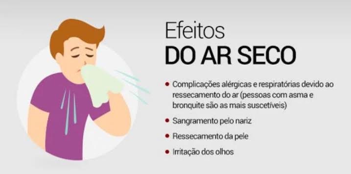 Atenção também para o ar cada vez mais seco nos próximos dias. A falta de umidade é um motivo de agravamento de problemas respiratórios e alérgicos