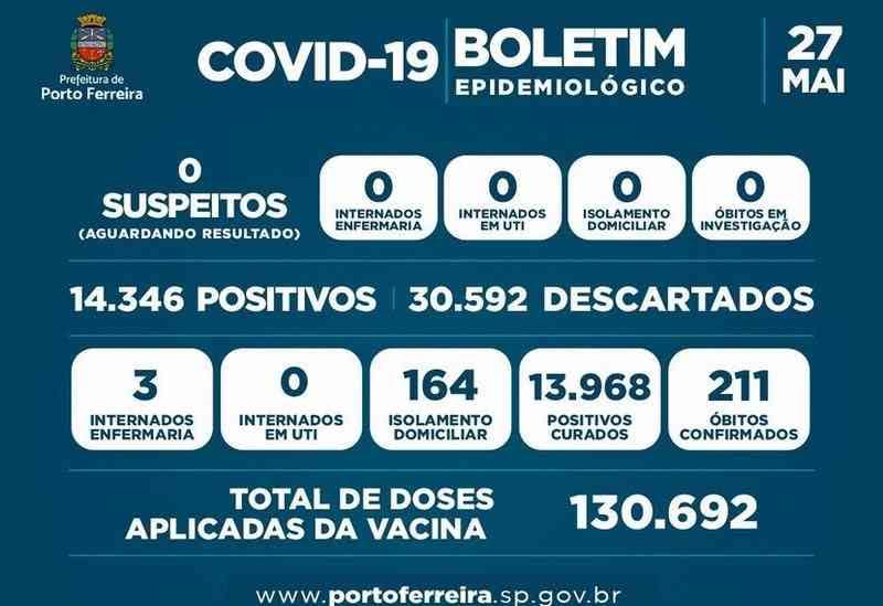 A Vigilância da Secretaria de Saúde de Porto Ferreira divulgou nesta sexta-feira (27/05) o Boletim Epidemiológico nº 772/2022, atendendo à determinação prevista no decreto municipal 1.281/2020.