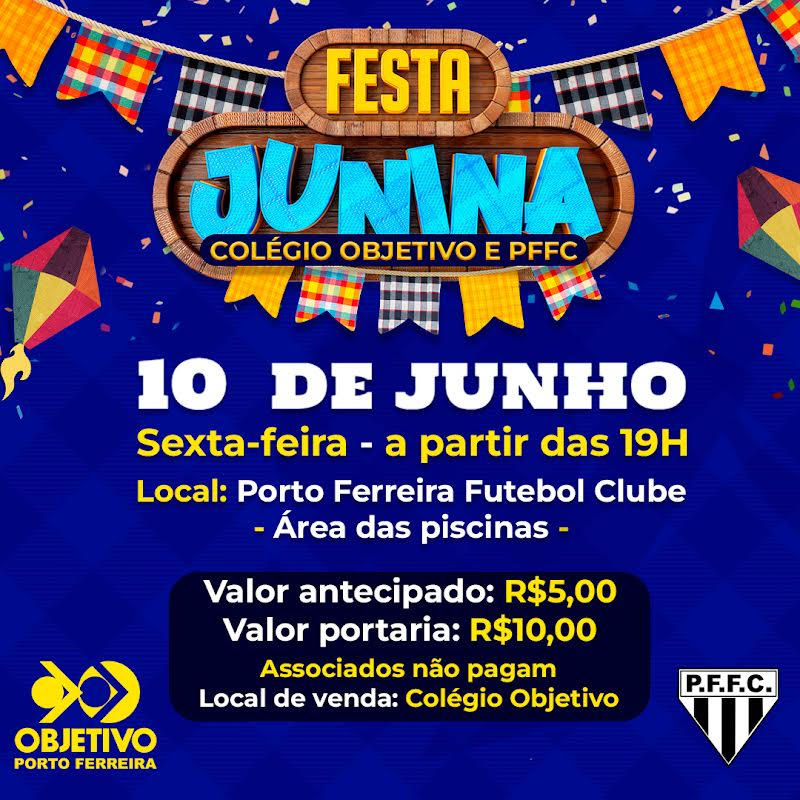O Colégio Objetivo em parceria com o Porto Ferreira Futebol Clube promove uma das maiores festas juninas da cidade, com musica ao vivo. Todos estão convidados a participar desse evento.