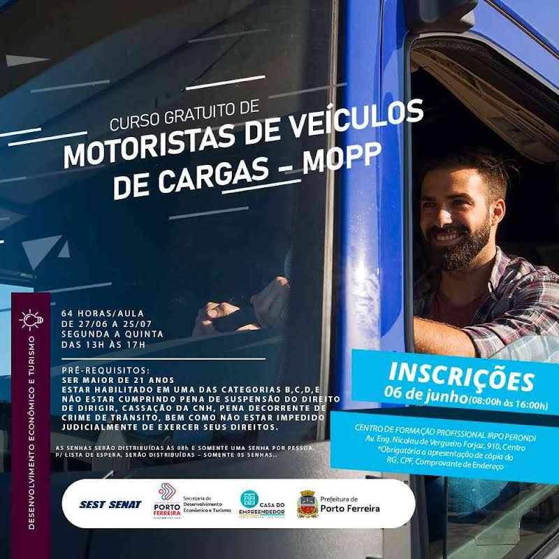 A Prefeitura de Porto Ferreira, por meio do Centro de Formação Profissional Irpo Perondi, e o Sest/Senat, em parceria com o programa Via Rápida, da Secretaria de Desenvolvimento Econômico do Estado de São Paulo, estão oferecendo cinco novos cursos gratuitos com início das turmas a partir do mês de junho.