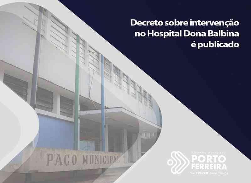 Está publicado no site oficial do município o Decreto nº 2.092 de 8 de junho de 2022, que dispõe sobre a intervenção junto à Irmandade de Misericórdia de Porto Ferreira, mantenedora do Hospital Dona Balbina.