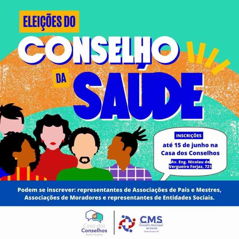 O Conselho Municipal de Saúde está realizando o processo eleitoral para a composição da gestão 2022 a 2024. Podem se candidatar representantes de associações de pais e mestres, associações de moradores e representantes de entidades sociais, conforme lei municipal nº 2.866, de 2011. As inscrições poderão ser feitas na Casa dos Conselhos, na avenida Engenheiro Nicolau de Vergueiro Forjaz, 721, Centro, até 15 de junho.