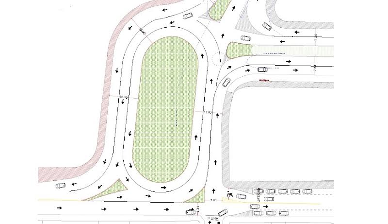 A rotatória será construída no cruzamento das avenidas Engenheiro Nicolau de Vergueiro Forjaz, Ângelo Ramos, Rudolf Streit e ruas Domingos Bruno (em frente ao ginásio) e Mathias Cardoso, no Centro.