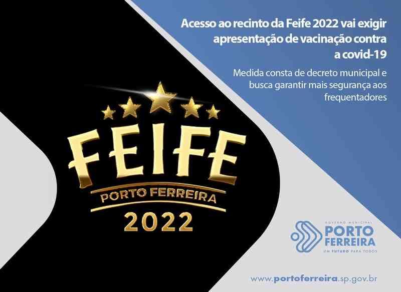A Prefeitura de Porto Ferreira publicou um decreto no qual determina a obrigatoriedade da apresentação do chamado “passaporte vacinal” contra a covid-19 para adentrar no recinto da Feira Industrial Ferreirense (Feife) 2022, que acontece entre os dias 28 e 31 de julho, no Centro Cultural Marco Antônio Riolino (antiga Fepasa).