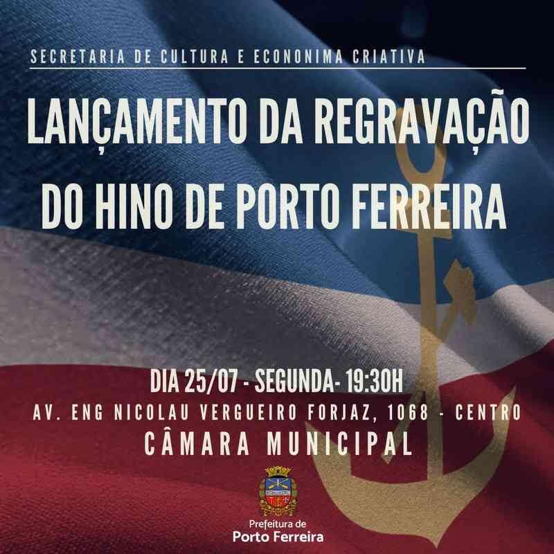 Na próxima segunda-feira (25/07) a Secretaria de Cultura e Economia Criativa fará o lançamento da regravação do Hino a Porto Ferreira, em cerimônia a ser realizada a partir das 19h30, na Câmara Municipal.