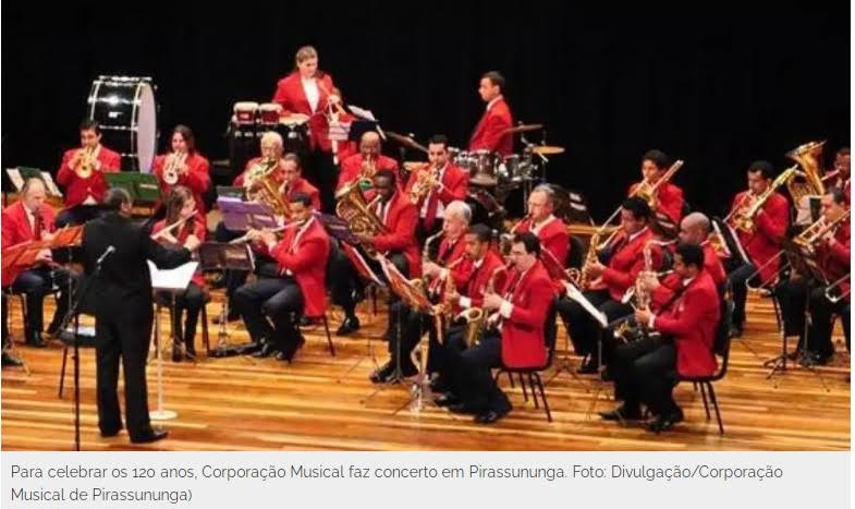 Em comemoração aos 120 anos, a Corporação Musical Pirassununguense realizará um concerto especial na cidade, hoje, quarta-feira (27). A apresentação será realizada no Centro de Convenções Dr. Fausto Victorelli, localizado na Avenida Painguás, nº 2014 – Jardim do Lago, a partir das 20h.