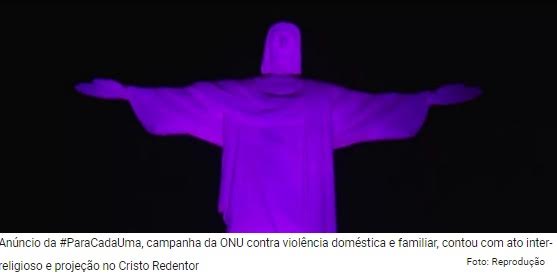 Anúncio da #ParaCadaUma contou com ato inter-religioso e projeção no Cristo Redentor. Agosto usa como símbolo a cor lilás para marcar o mês de conscientização pelo fim da violência contra a mulher