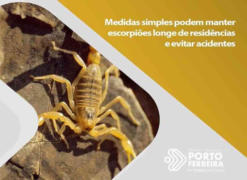 Devido a relatos de aparecimento de escorpiões em bairros da cidade, a Secretaria de Saúde de Porto Ferreira traz abaixo informações importantes para mantê-los longe de residências e evitar acidentes, divulgadas recentemente pelo Ministério da Saúde.