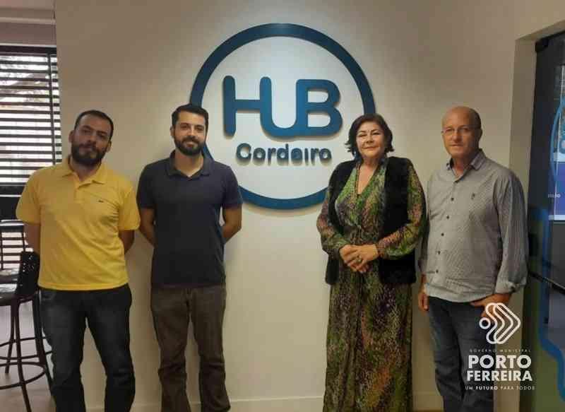 Na terça-feira (09/08) a secretária de Desenvolvimento Econômico e Turismo de Porto Ferreira, Maria Lucia Baltieri, acompanhada pelo chefe de Divisão de Inovação e Desenvolvimento Econômico, Willian Zanetti, esteve no município de Cordeirópolis (SP) para conhecer o HUB Cordeiro.