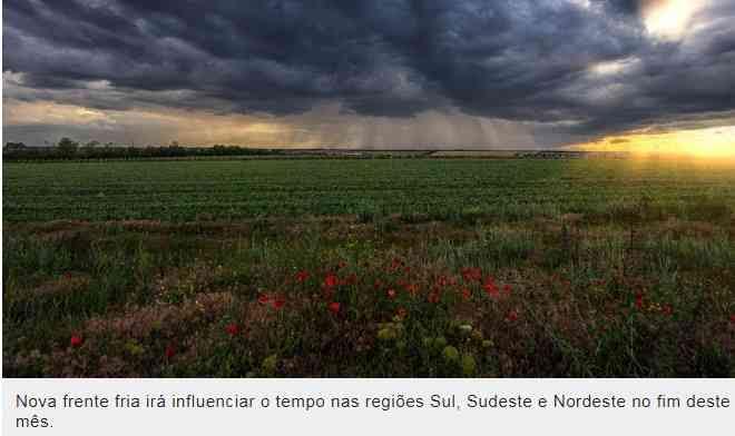 A partir do próximo fim de semana uma frente fria começa a avançar pela Região Sul e nos dias seguintes consegue chegar até o Nordeste.
