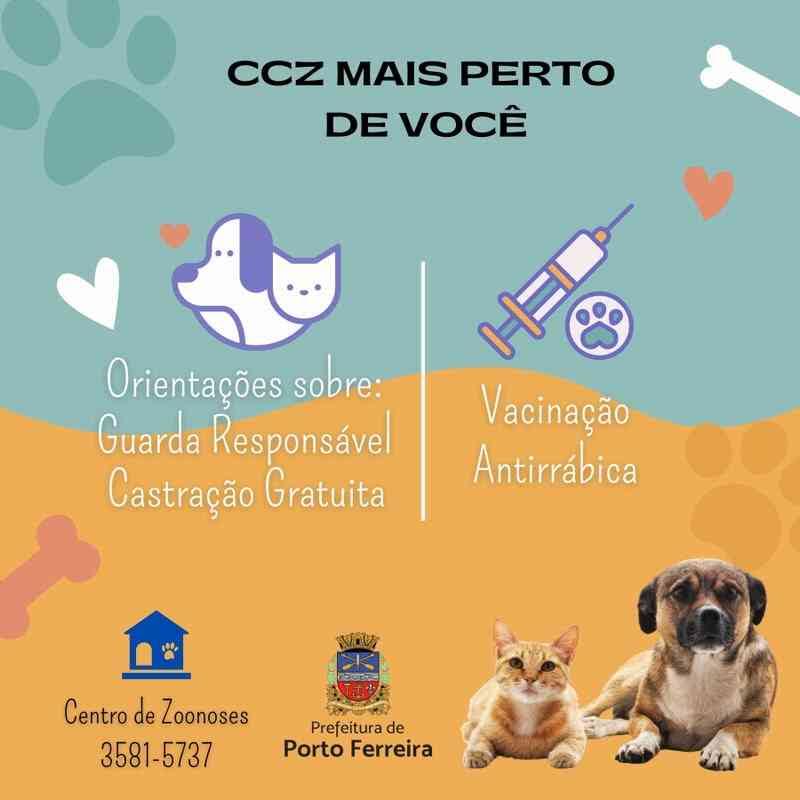 Visando realizar a vacinação antirrábica (raiva) em animais de bairros, orientar para a guarda responsável, instruir e realizar fichas para castração de cães e gatos da população mais carente, o Centro de Controle de Zoonoses Olávio Rodrigues Ribaldo dará início ao projeto CCZ MAIS PERTO DE VOCÊ.