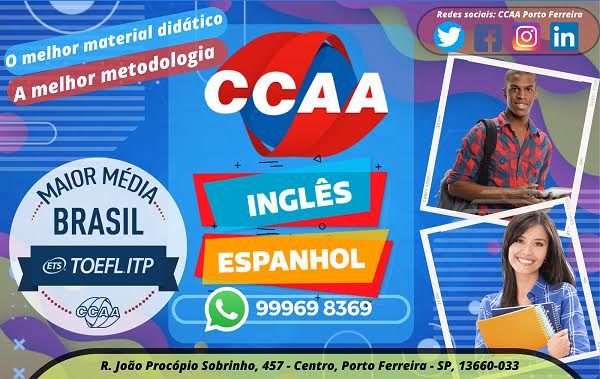 Você pode contar também com o CCAA Porto Ferreira durante sua jornada de aprendizado. Agende uma aula demonstrativa de inglês gratuita e veja como a metodologia do CCAA pode te ajudar a alcançar seus objetivos. Para mais informações sobre nossos serviços envie uma mensagem por Whatsapp para (19) 99969 8369.