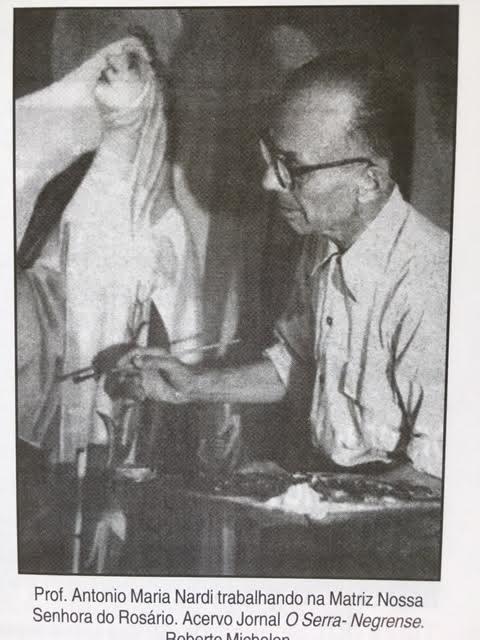 Antonio Maria Nardi, pintor e ilustrador, nasceu em Ostellato, Itália, em 1897. Estudou na “Academmia di Belle Arti di Bologna”, formando-se em 1916. Foi combatente durante a 1ª Guerra Mundial. Realizou várias exposições na Itália, entre 1919 e 1935, sendo premiado inúmeras vezes pela qualidade de seus trabalhos. Veio para o Brasil em 1949, onde permaneceu até 1965. Sua estadia na terra tupiniquim foi ocasionada em decorrência de uma importante exposição das suas obras, realizada no Ministério da Educação e Cultura do Rio de Janeiro, cuja visibilidade proporcionou inúmeras encomendas para igrejas do Rio de Janeiro, dando início a uma vasta produção artística religiosa e sacra no Brasil.